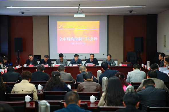 3月19日,全市机构编制工作会议召开,各区(市)县委编办主任、成都高新区和成都天府新区党工委组织部干部人事处负责同志、市委编办副处级以上干部参加会议。会上,传达学习了全国、全省机构编制工作会议精神;市委组织部副部长、市委编办(市审改办)主任高建军对2014年全市机构编制工作进行了总结,对2015年的重点工作作了部署;市委编办其他领导同志就各自分管的工作作了具体安排;锦江区、武侯区等7个区(市)县分别就推进改革中好的经验做法作了交流发言。