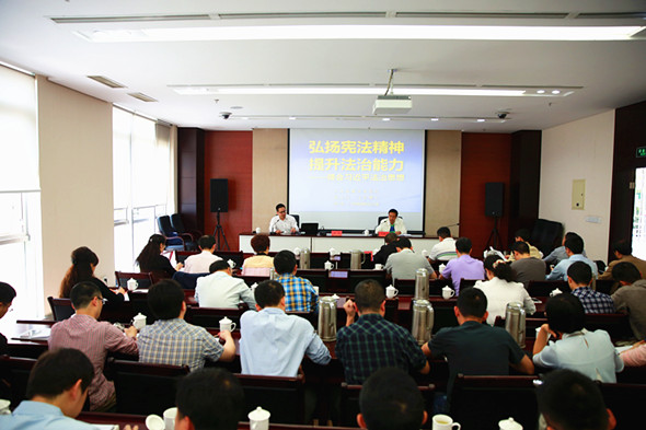 郭祎老师紧扣学习贯彻党的十八届四中全会主题,从贯彻落实“四个全面”战略部署出发,阐释了全面依法治国与“四个全面”的内在逻辑关系,对如何理解习近平同志系列法治思想,进一步弘扬宪法精神和提升法治能力进行了深入浅出的讲解。经过学习,机关党员干部对全面依法治国的内涵和外延有了更加深刻的认识和理解。大家纷纷表示,郭祎老师的授课传递了法治的“正能量”,将结合自身实际,进一步树牢法治理念,切实做到学法懂法守法用法。