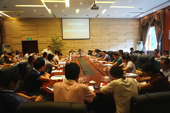 为做好综合行政执法体制改革试点工作, 7月9日, 市委编办组织召开了综合行政执法体制改革工作座谈会,19个区(市)县、高新区、天府新区机构编制部门有关同志参加会议。