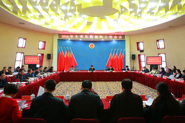 3月25日,市委编办组织召开全市机构编制工作会议,深入学习贯彻习近平总书记系列重要讲话精神和中央省市系列重大决策部署,传达贯彻全国全省机构编制工作会议精神,总结交流“十二五”时期特别是2015年工作,谋划部署2016年及今后一段时期机构编制工作。市委编办、各区(市)县委编办共70余人参加会议。